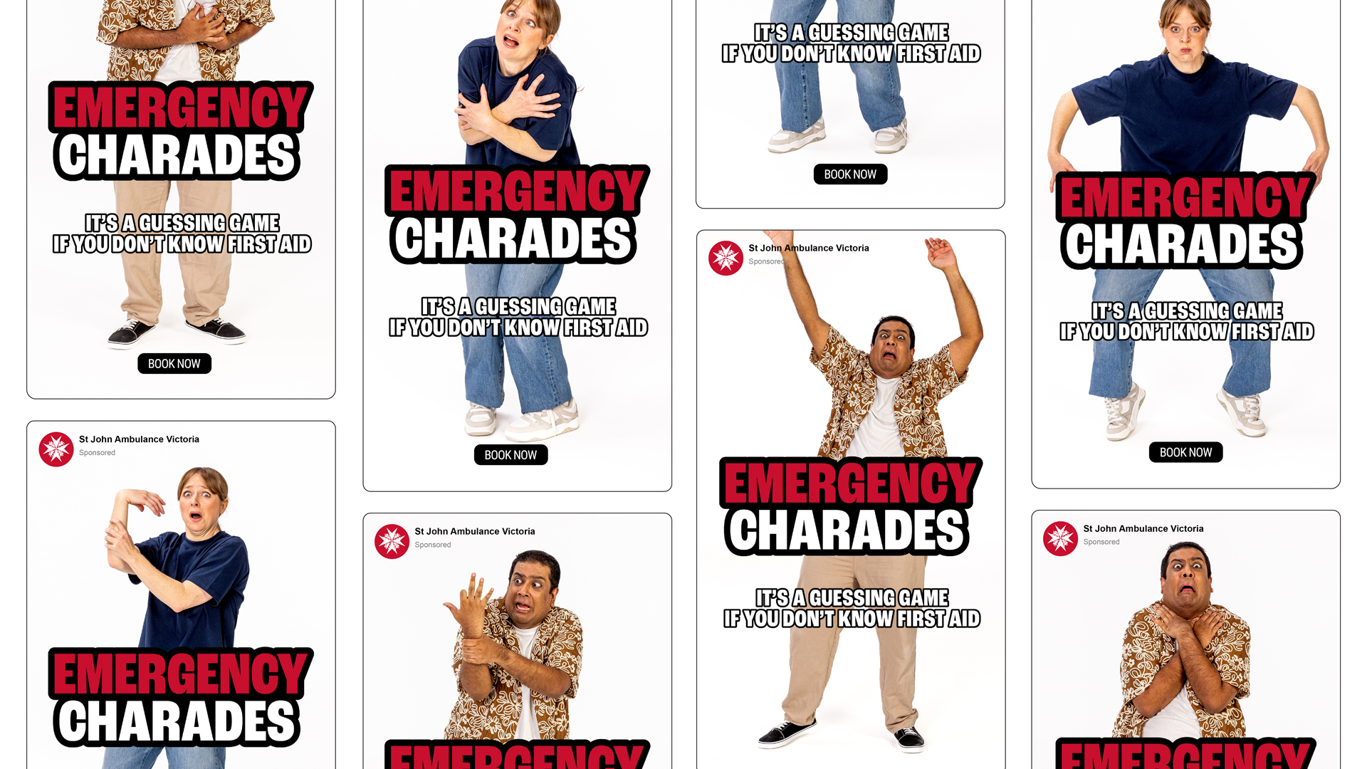 The campaign dramatises common emergency scenarios as a game of charades, placing audiences in the uncomfortable position of trying to interpret what’s wrong, without the knowledge to help. Retargeted executions then shift from the ‘emergency’ to the ‘response’, demonstrating the correct first aid actions delivered by St John Ambulance responders and prompting viewers to get or complete their training.