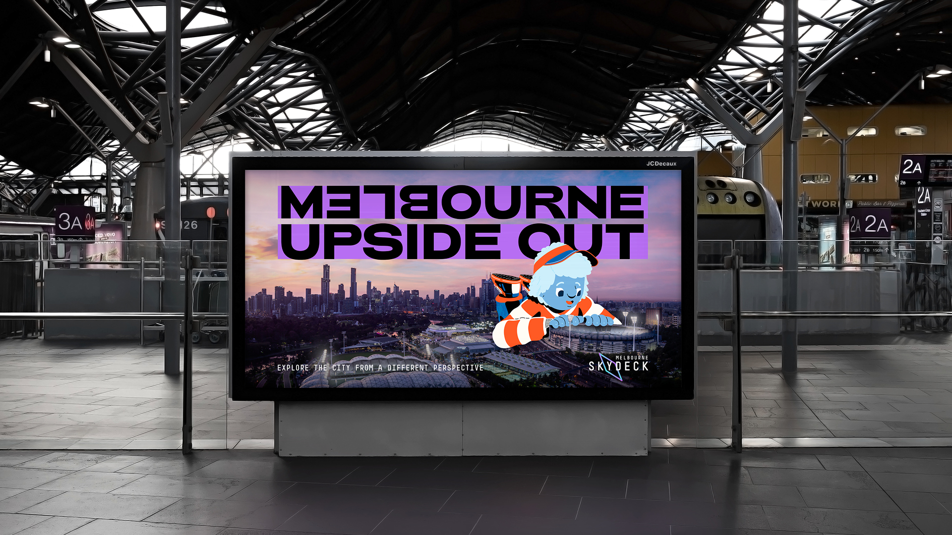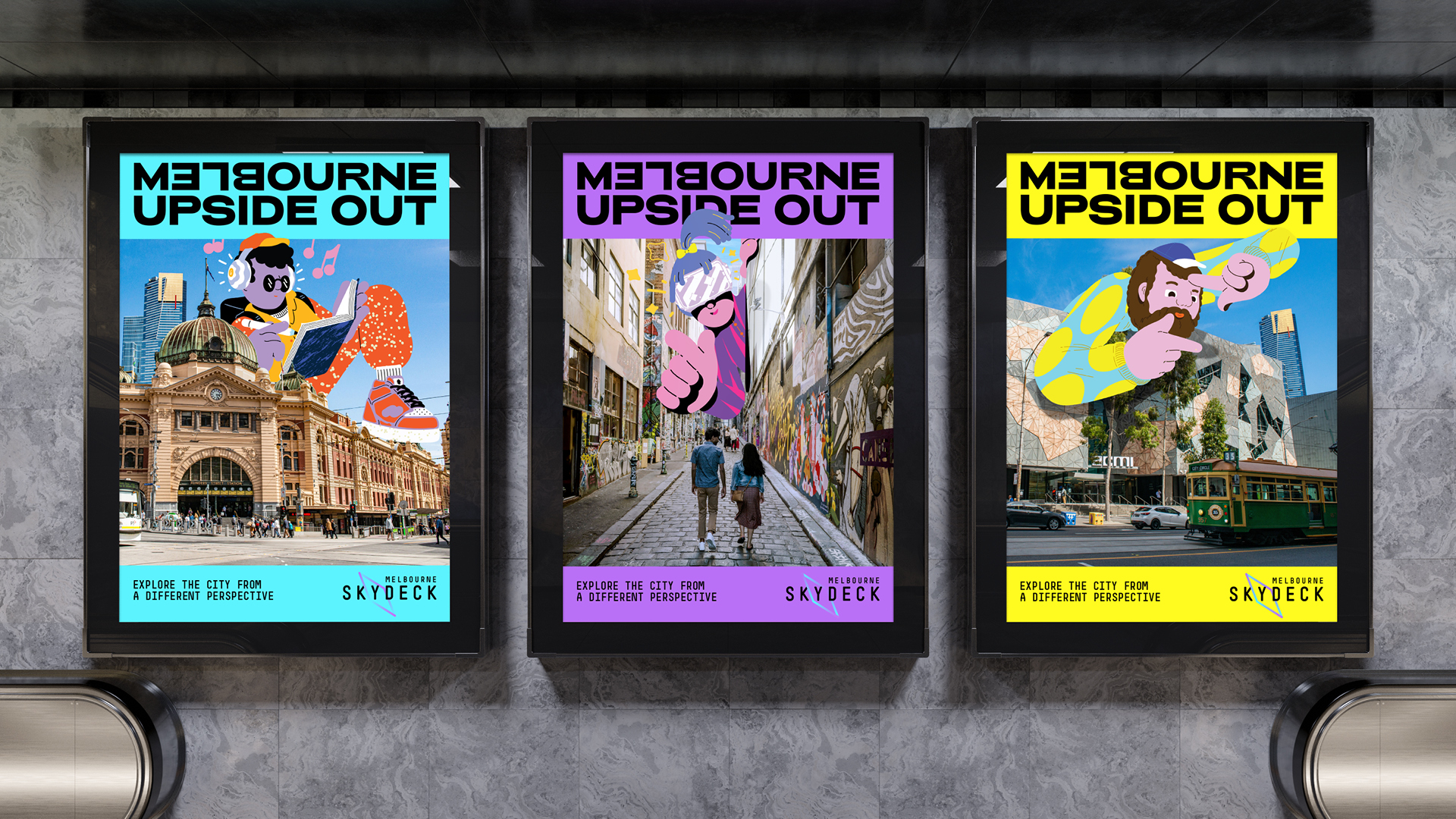 At the heart of the creative idea is a visual and conceptual inversion of Melbourne’s laneway culture. ‘Melbourne Upside Out’ flips the city on its head, transforming it into a visual playground that can be experienced from Skydeck. Brought to life by award-winning illustrator Brolga, the identity delivers a sensory-led proposition that captures the raw thrill of seeing the city from above.